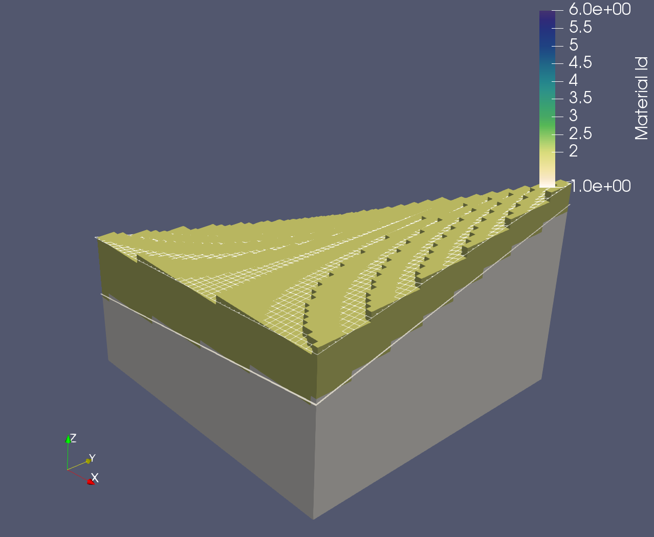 Now that the straitipgrahy has been modeled and we are comfortable with our results, we will map their spanning domain to the parent mesh. As done with the psets above, this process will be driven via attributes.