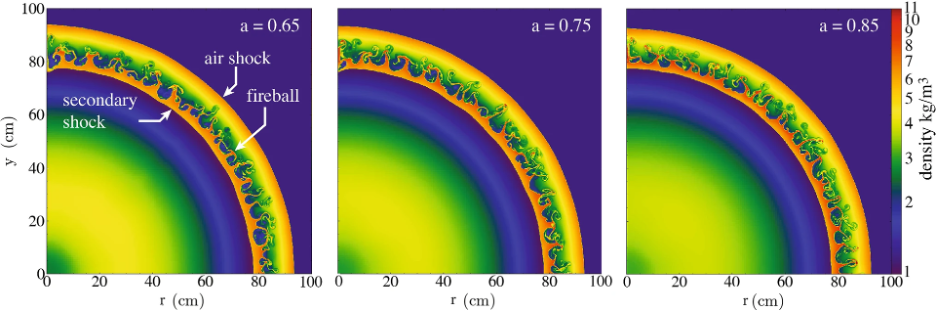 The new framework will accommodate multiple HE-burn models, including programmed burn and reactive burn, by employing an explicit multimaterial formulation. Material interfaces will be captured with a level-set method, while a ghost-fluid approach will enforce the correct pressure and velocity conditions across discontinuities. Leveraging the Singularity-EOS library, each constituent (explosive, product gases, air, etc.) can be described by its own equation of state, preserving numerical stability even in the presence of strong shocks. In parallel, we will augment HARD’s existing hydrodynamic solvers with the additional physics modules required for these capabilities.
